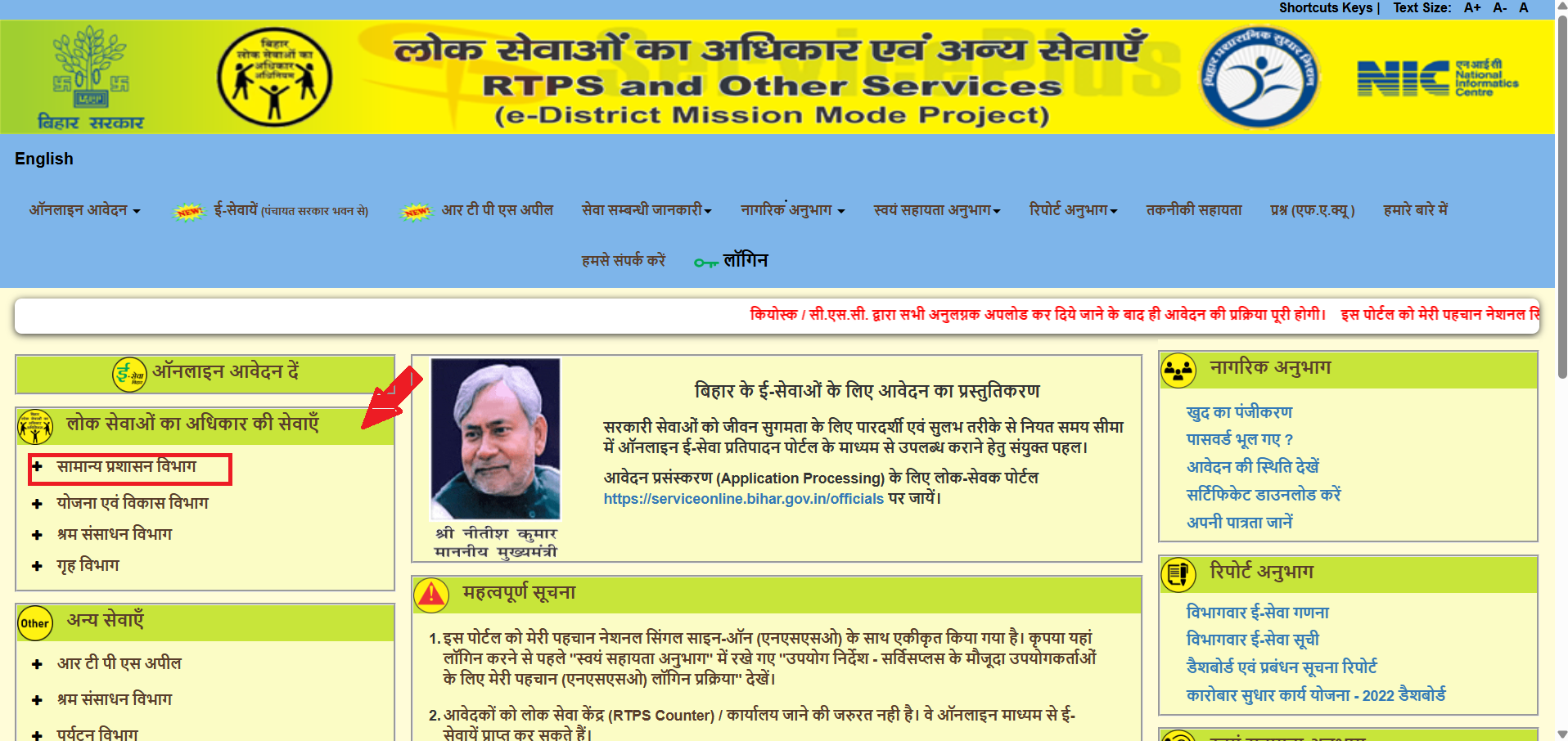| पोर्टल का नाम | Service Plus / RTPS Bihar Portal |